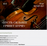 «Музыка южных широт» в исполнении Концертного духового оркестра Югры и солистов - лауреатов всероссийских и международных конкурсов - Анна Кошкина (виолончель), Александр Маслов (фортепиано), Гайк Казазян (скрипка), Кирилл Солдатов (труба)